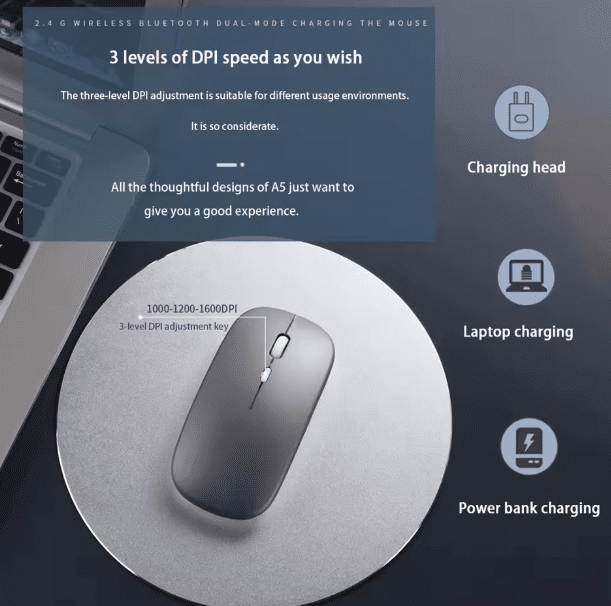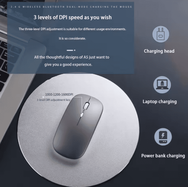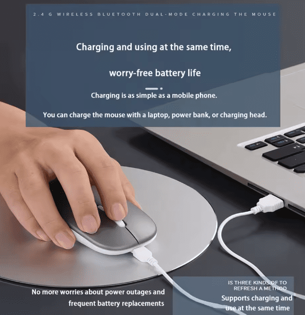 Wireless Bluetooth Mouse 2.4G – Silent, Slim & Rechargeable
